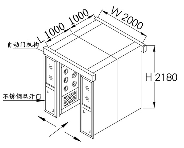 5、按設(shè)定的時(shí)間吹淋完后,內(nèi)門打開,人/貨走出;