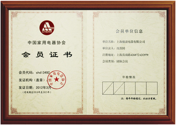 近日,上海德凌電器有限公司成為中國家用電器協會會員。